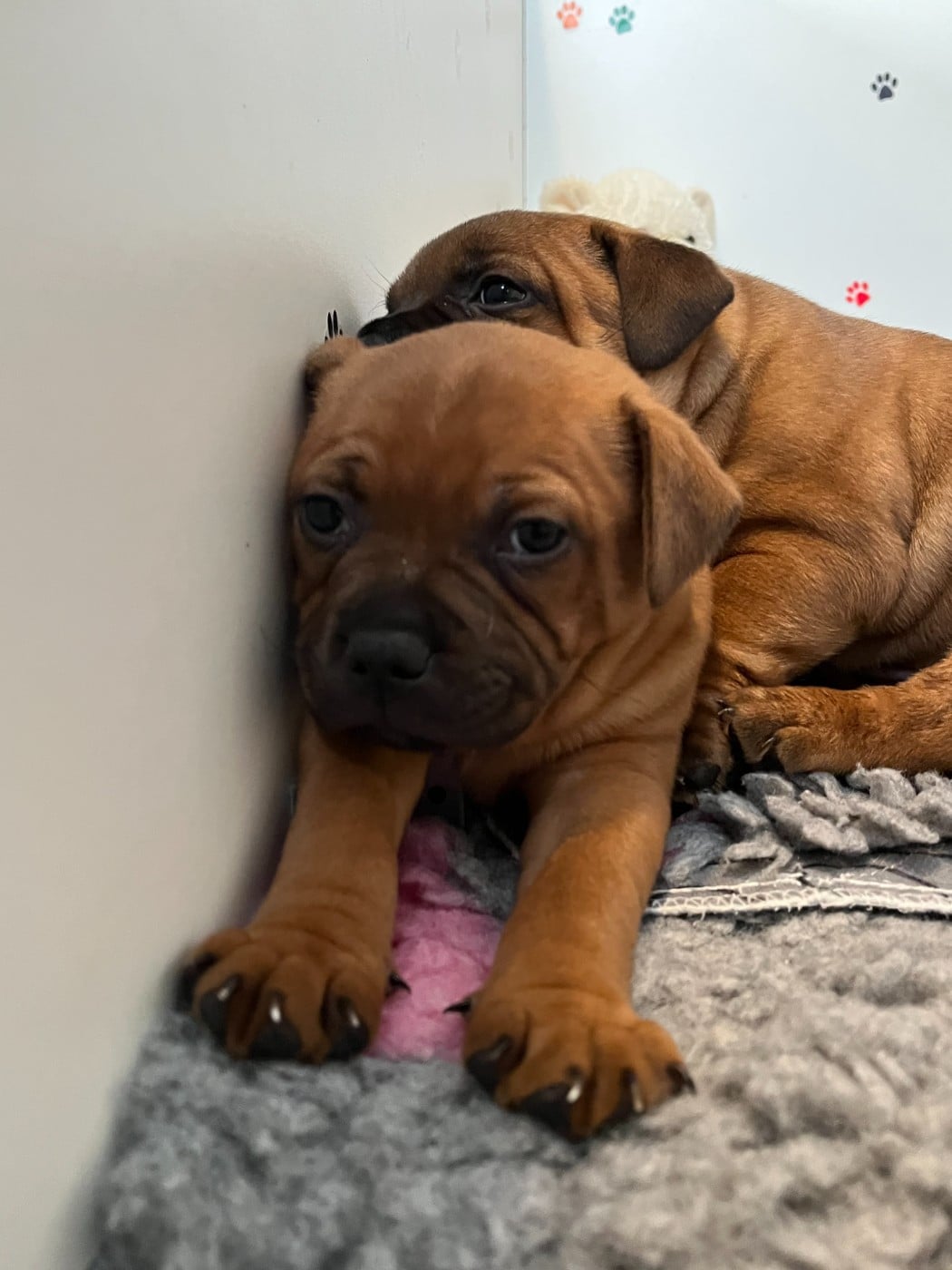 A réserver chiot staffordshire bull terrier LOF. Nés le 24/12/2025 2 males (rouge pan blanc) mère : Thya du Domaine d'Heika père : U-Jax Teller des terres d'Iro Numéro de portée : LOF-2025038963-2025-1 Les parents sont tous deux testés HC, L2HGA et DIL DD, carte d'identité génétique des 2 parents. Ils sont tous deux cotation 3, souvent en concours. les chiots seront primo-vaccinés, pucés et vermifugés avant leur départ. certificat de bonne santé ainsi qu'un kit chiot. Départ après le 1 er mars 2026 demandez nous en amis sur le groupe facebook : Des dunes de Valenpierre pour suivre leur évolution (vidéo, photo) Nous sommes un élevage familial, nos chiots grandissent à la maison avec l'environnement familial du quotidien (bruits, autres chiens...)afin qu'ils puissent s'intégrer facilement et dans les meilleurs conditions à leurs nouveaux foyers. un acompte de 500 euros vous sera demandé a la réservation. Vous pouvez nous joindre la semaine après 16 h et le week end toute la journée.